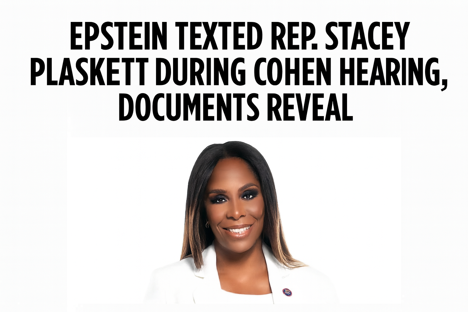 Newly released documents show Jeffrey Epstein exchanged text messages with Del. Stacey Plaskett, Democratic delegate of the U.S. Virgin Islands, during Michael Cohen’s 2019 congressional testimony. These communications, part of a House Oversight Committee release, indicate Epstein tracked the hearing in real time and may have tried to influence Plaskett’s questioning as Cohen made allegations against then-President Donald Trump.